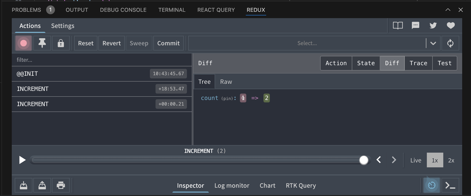 • First-party Redux DevTools integration: If your app uses Redux Toolkit, the IDE will automatically detect that, and Redux plugin will be listed in the Dev Tools menu where you can enable it. Once enabled you will be able to use the official Redux UI from within your editor panel.